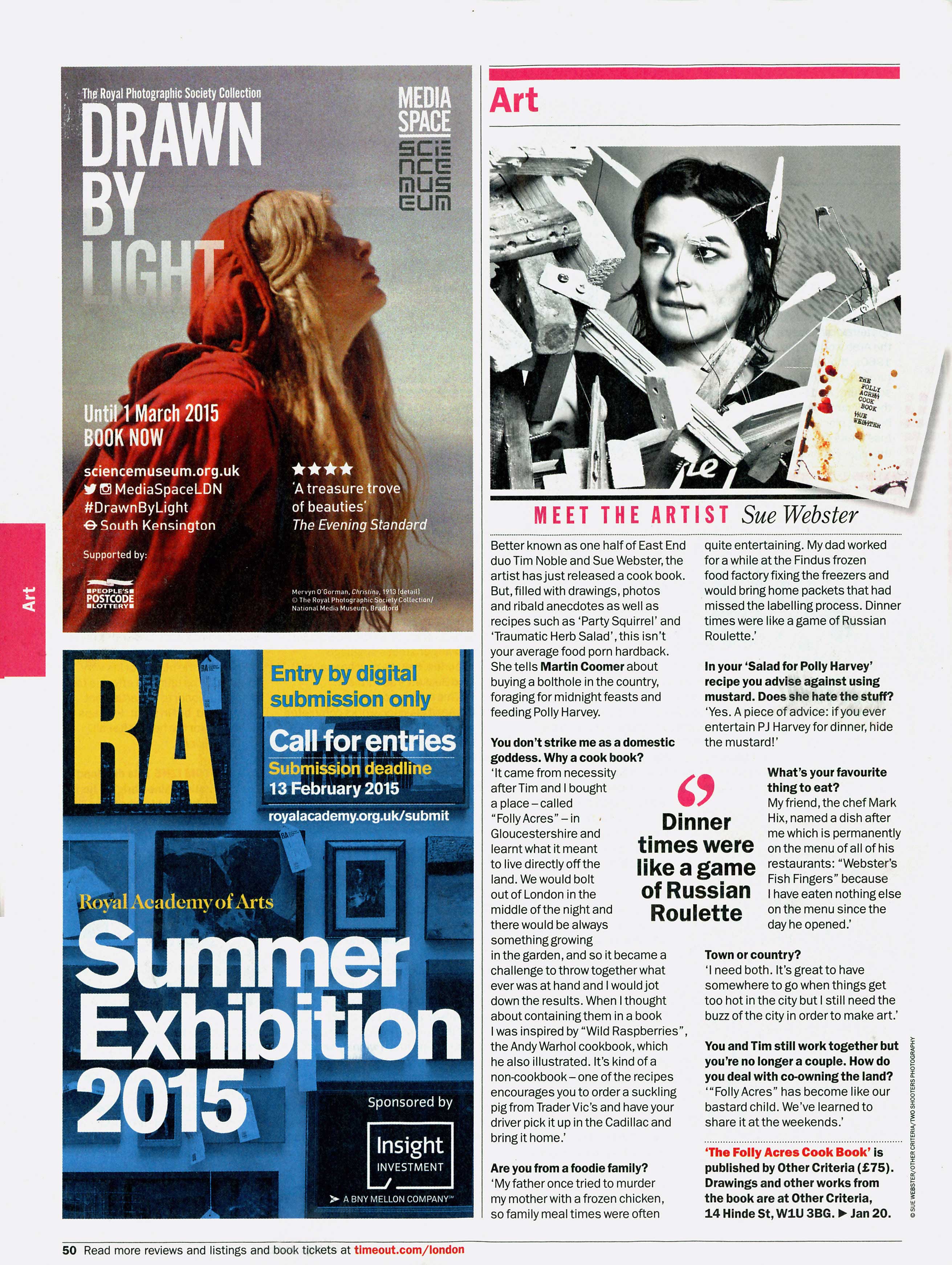 "Meet the Artist: Sue Webster" Time Out, London (13–19 Jan 2015) |